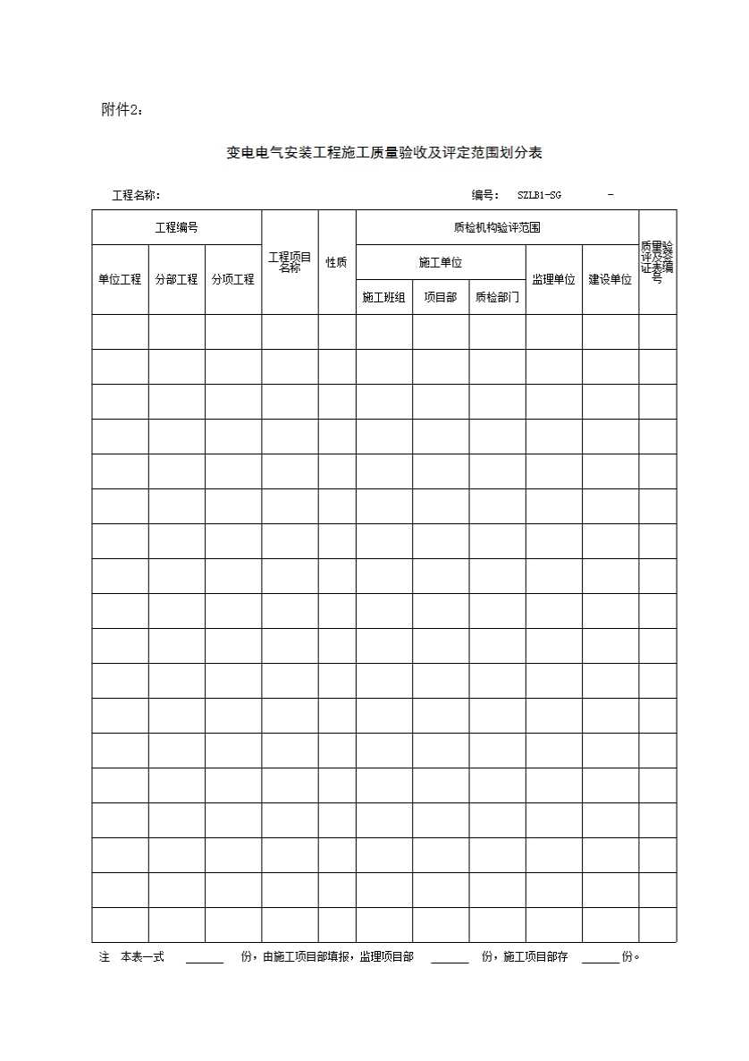 SZLB1 施工质量检验及评定范围划分报审表的附件2