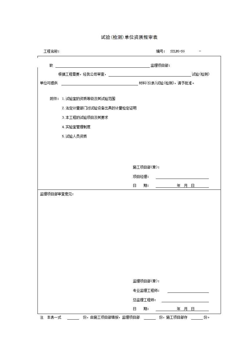 表格名称:SZLB5 试验(检测)单位资质报审表