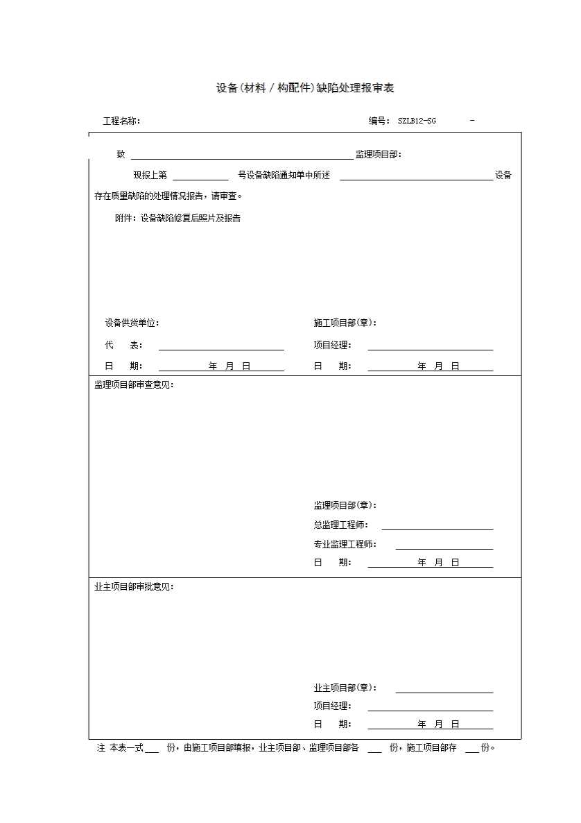 SZLB12 设备(材料/构配件)缺陷处理报审表