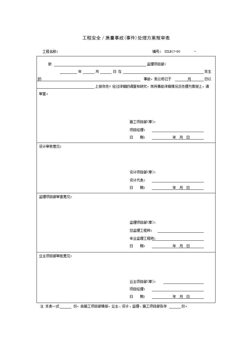 SZLB17 工程安全/质量事故(事件)处理方案报审表