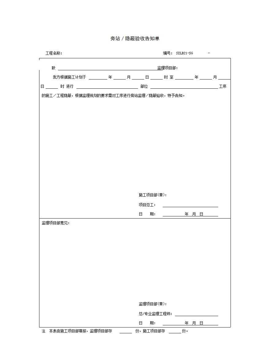 SZLB21 旁站/隐蔽验收告知单