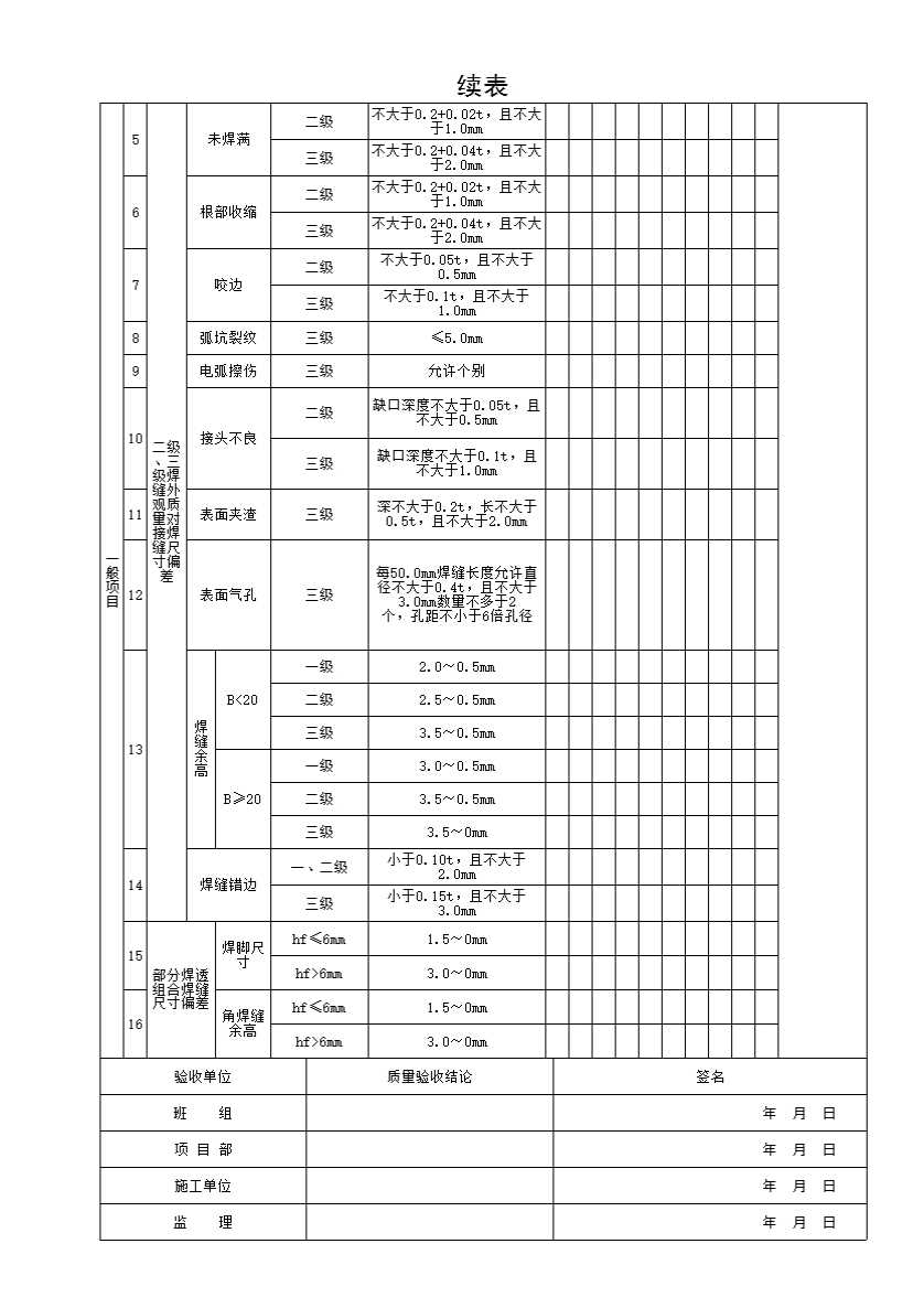 表格名称:QCSG 表 3-6.3.3 钢结构制作(安装)焊接工程检验批质量验收记录表
