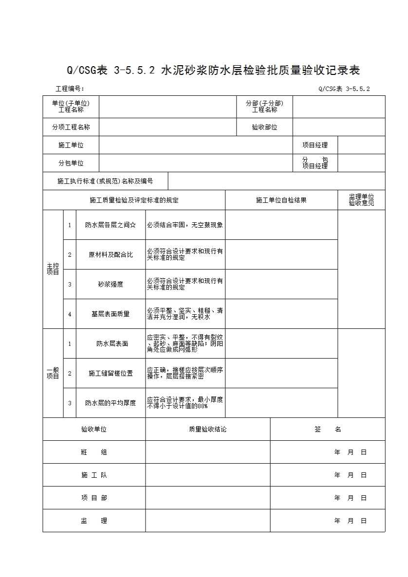 QCSG 表 3-5.5.2 水泥砂浆防水层检验批质量验收记录表