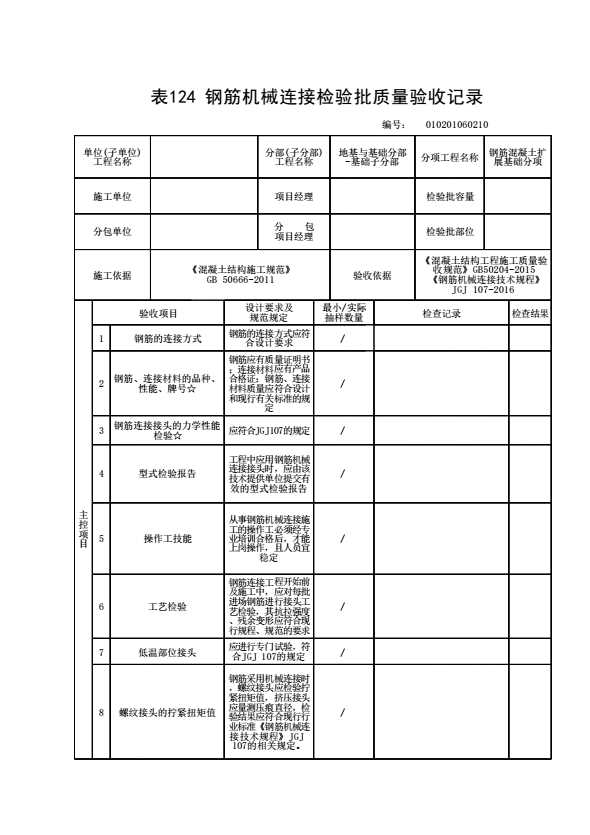 表格名称:010201060210 钢筋机械连接检验批质量验收记录