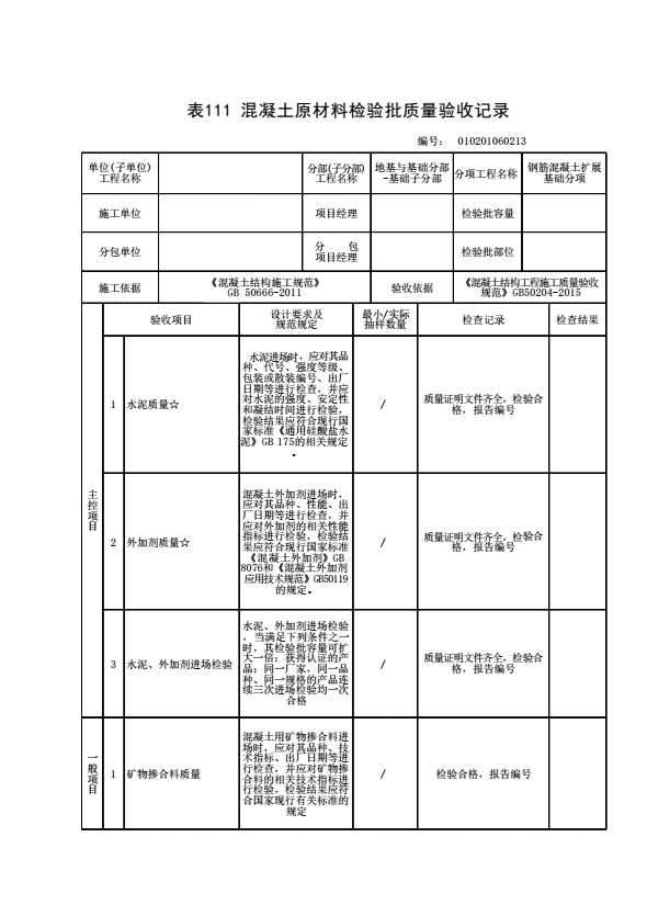 表格名称:010201060213 混凝土原材料检验批质量验收记录