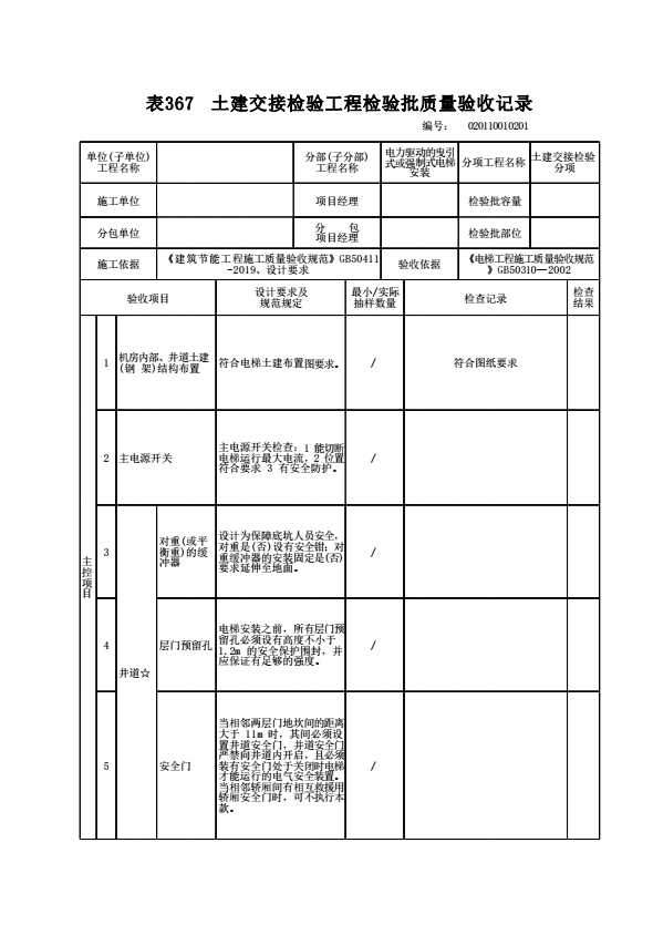 020110010201 土建交接检验工程检验批质量验收记录