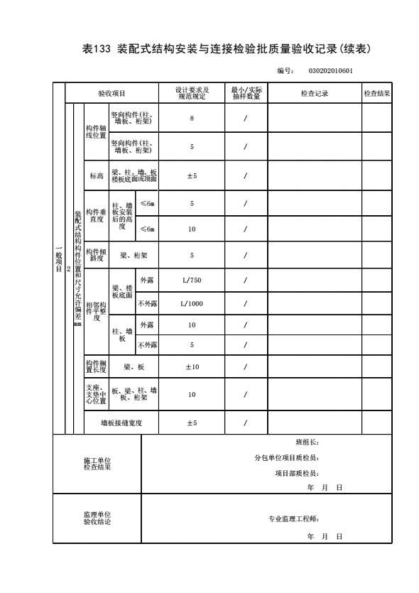 表格名称:030202010601 装配式结构安装与连接检验批质量验收记录