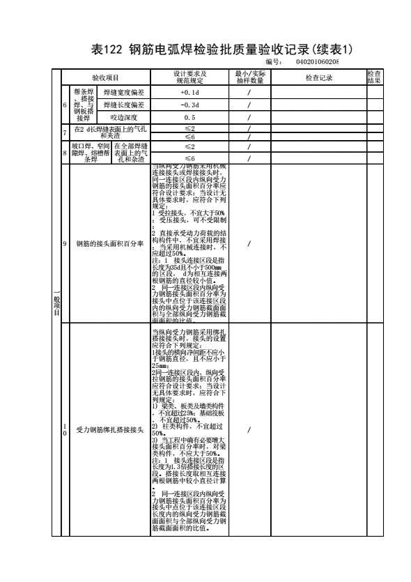 表格名称:040201060208 钢筋电弧焊检验批质量验收记录
