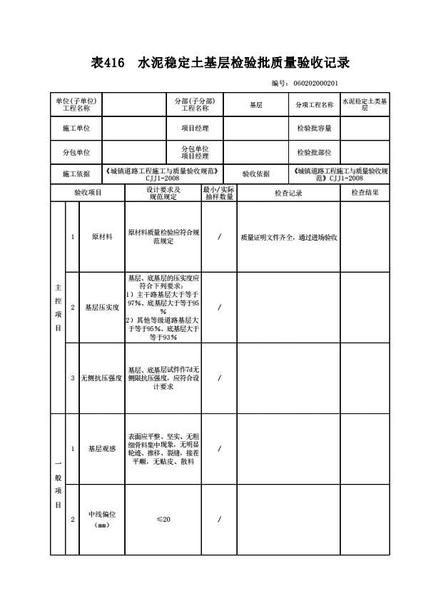 表格名称:060202000201 水泥稳定土基层检验批质量验收记录
