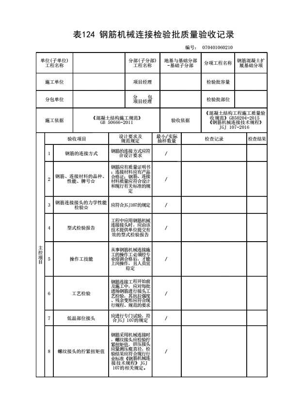 表格名称:070401060210 钢筋机械连接检验批质量验收记录
