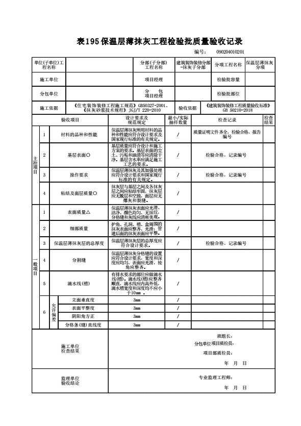 表格名称:090204010201 保温层薄抹灰工程检验批质量验收记录