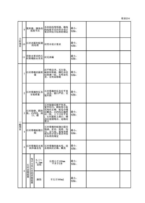 表格名称:030103100301 石材幕墙工程检验批质量验收记录