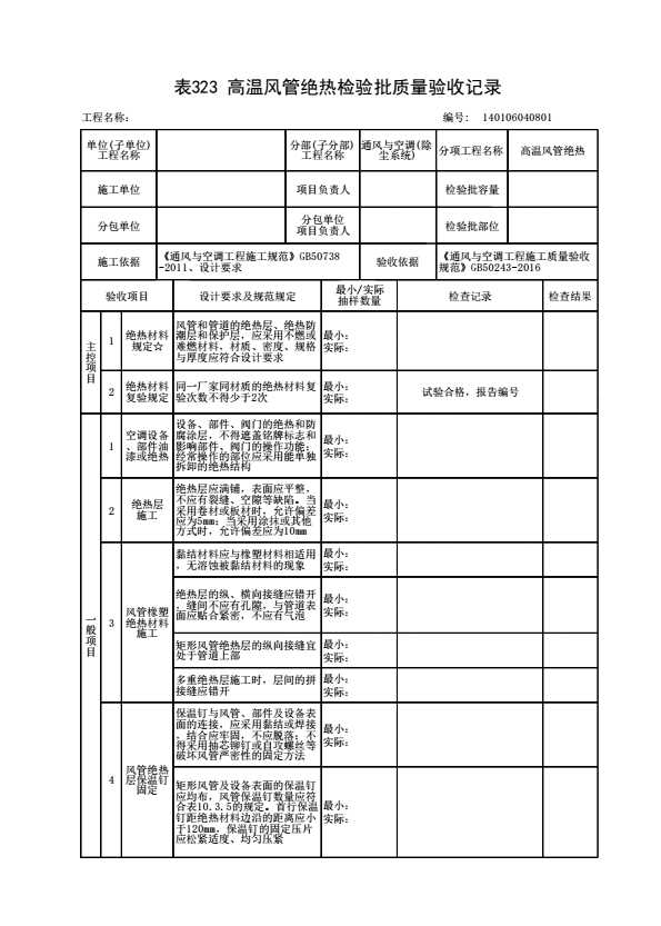 表格名称:140106040801 高温风管绝热检验批质量验收记录