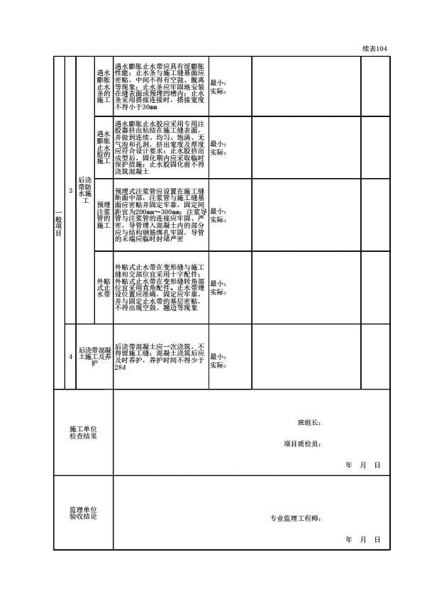 表格名称:140201070203 后浇带检验批检验批质量验收记录