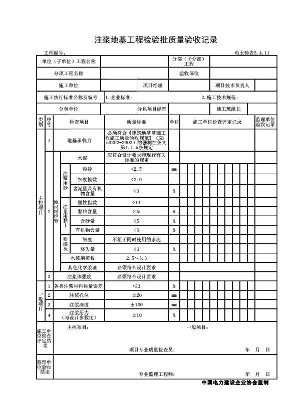 电力建设土建工程施工、试验及验收标准表式