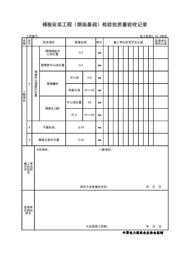 表格名称:电土验表6.10.4 模板安装工程(烟囱基础)检验批质量验收记录