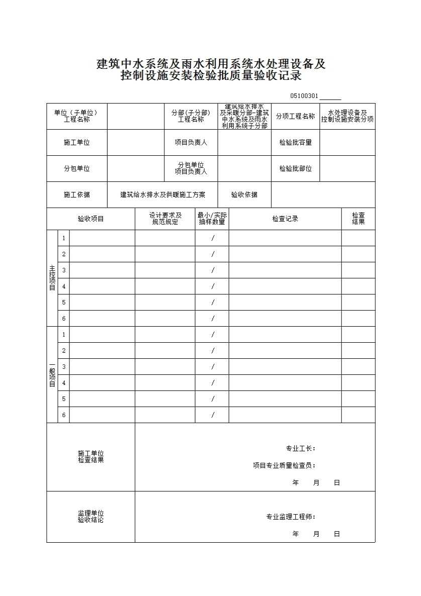 05100301_建筑中水系统及雨水利用系统水处理设备及控制设施安装检验批质量验收记录