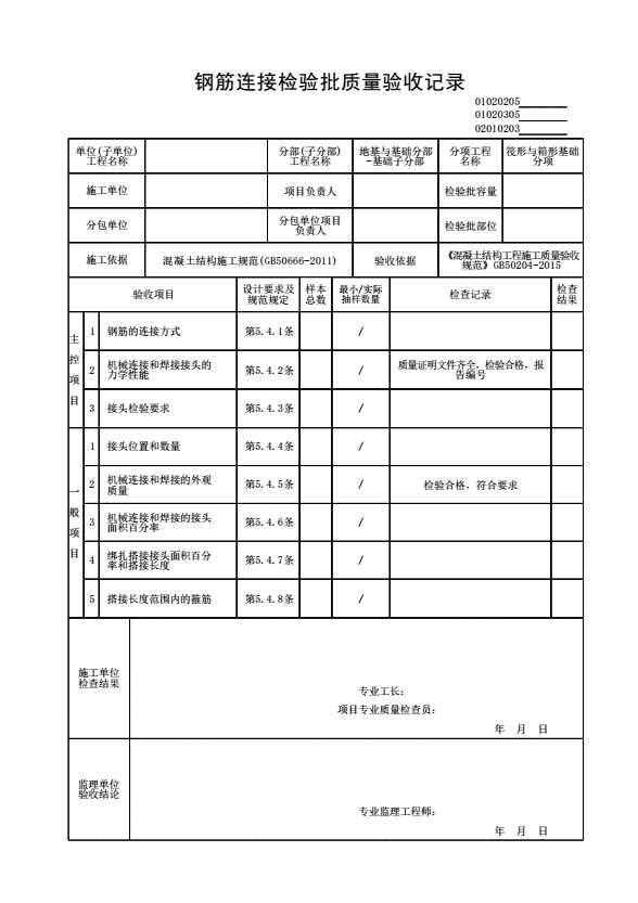 检查数量:按现行行业标准《钢筋机械连接技术规程》JGJ107和《钢筋焊接及验收规程》JGJ18的规定确定。