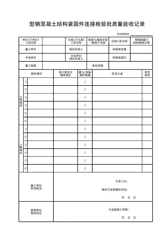 表格名称:01020602_型钢混凝土结构紧固件连接检验批质量验收记录