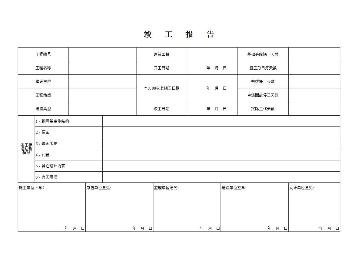 表格名称:竣工报告