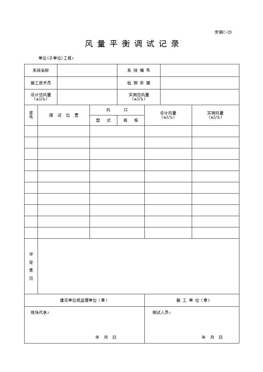 表格名称:C-25风 量 平 衡 调 试 记 录