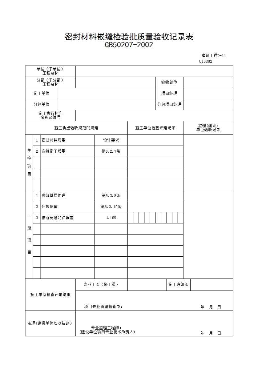 表格名称:密封材料嵌缝检验批质量验收记录表