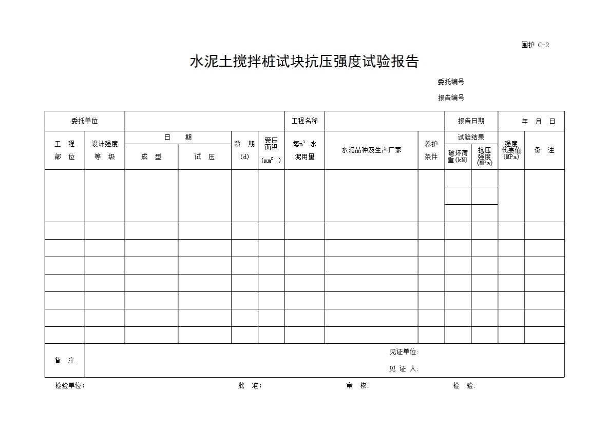 表格名称:C-2_水泥土搅拌桩试块抗压强度试验报告