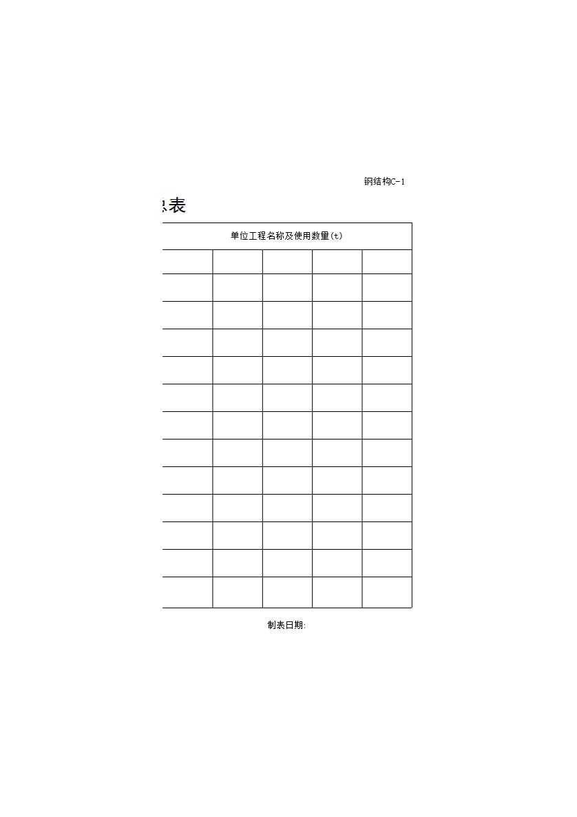 表格名称:C-1_钢材质量证明书、复试报告汇总表
