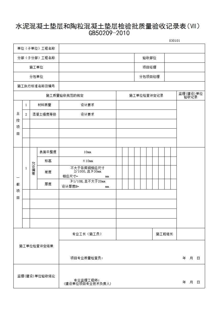 表格名称:水泥混凝土垫层和陶粒混凝土垫层检验批质量验收记录表(Ⅶ)