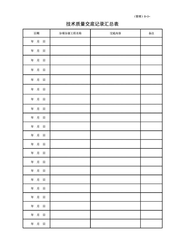 表格名称:(管理)B-3 技术质量交底记录汇总表