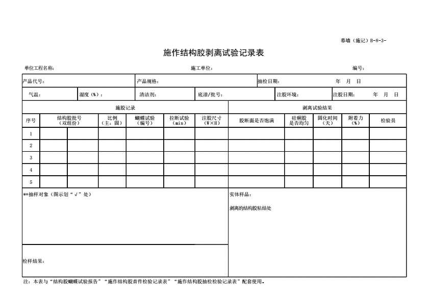 表格名称:幕墙(施记)B-8-3 施作结构胶剥离试验记录表