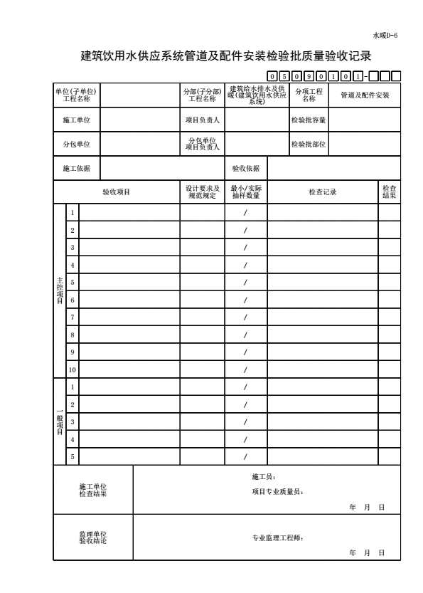 表格名称:05090101_建筑饮用水供应系统管道及配件安装检验批质量验收记录