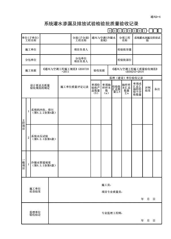 表格名称:06120501_系统灌水渗漏及排放试验检验批质量验收记录