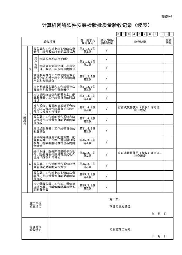 表格名称:08040201_计算机网络软件安装检验批质量验收记录