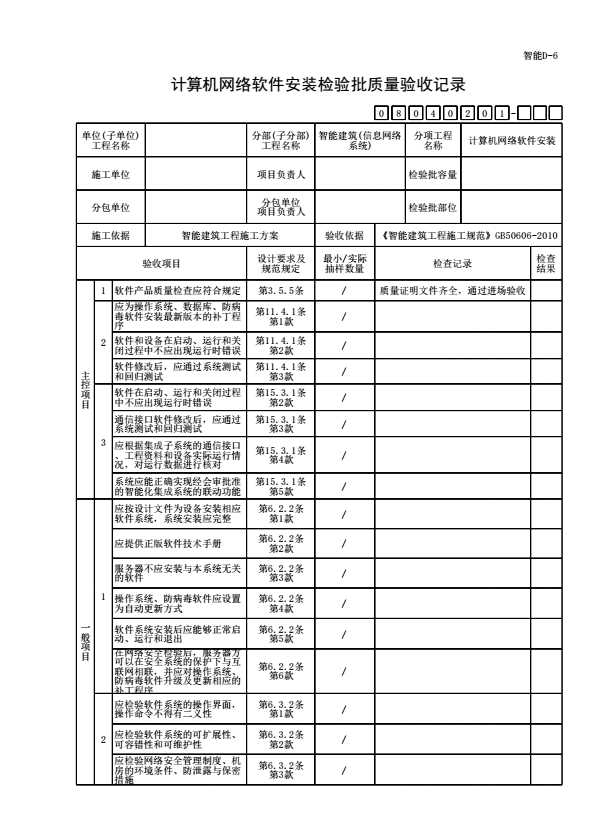 智能D-6 智能建筑分部工程所含检验批质量验收记录