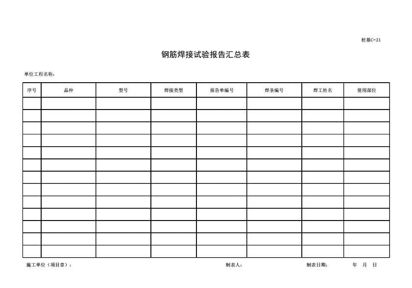 表格名称:C-31 钢筋焊接试验报告汇总表