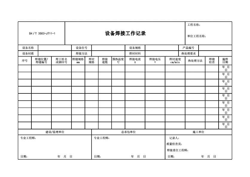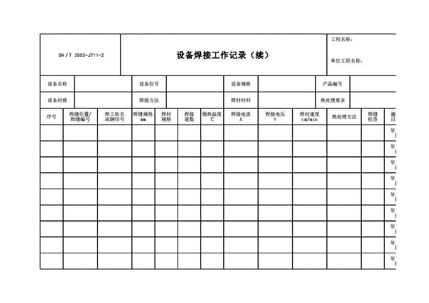表格名称:SH/T 3503-J711 设备焊接工作记录
