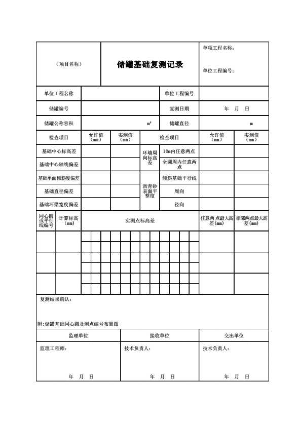 表格名称:C.0.2 储罐基础复测记录