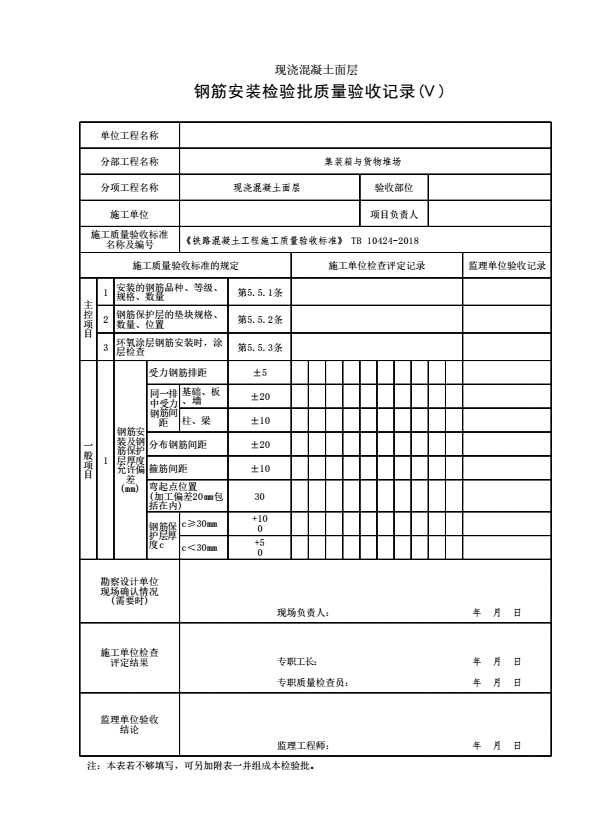 表格名称:【现浇混凝土面层】钢筋安装检验批质量验收记录(Ⅴ)