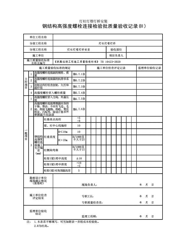 【灯柱灯塔灯桥安装】钢结构高强度螺栓连接检验批质量验收记录(Ⅲ)