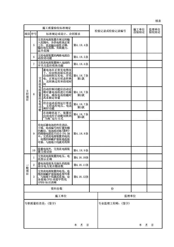 表格名称:10010902 交直流电源装置检验批质量验收记录表