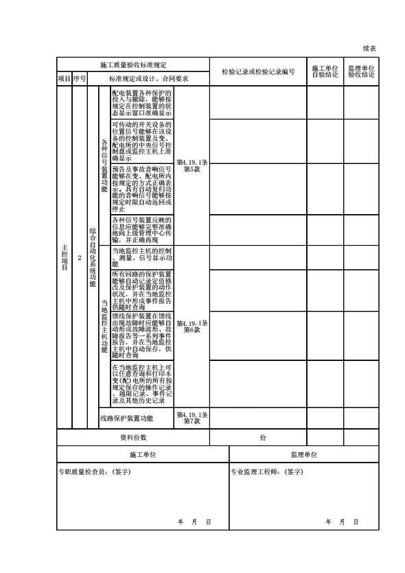 表格名称:10011001 综合自动化系统检验批质量验收记录表