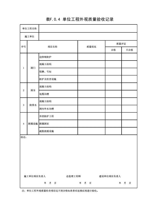 表格名称:表F.0.4 单位工程外观质量验收记录