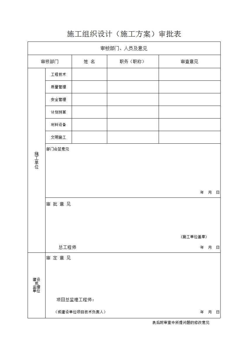 表格名称:施工组织设计(施工方案)