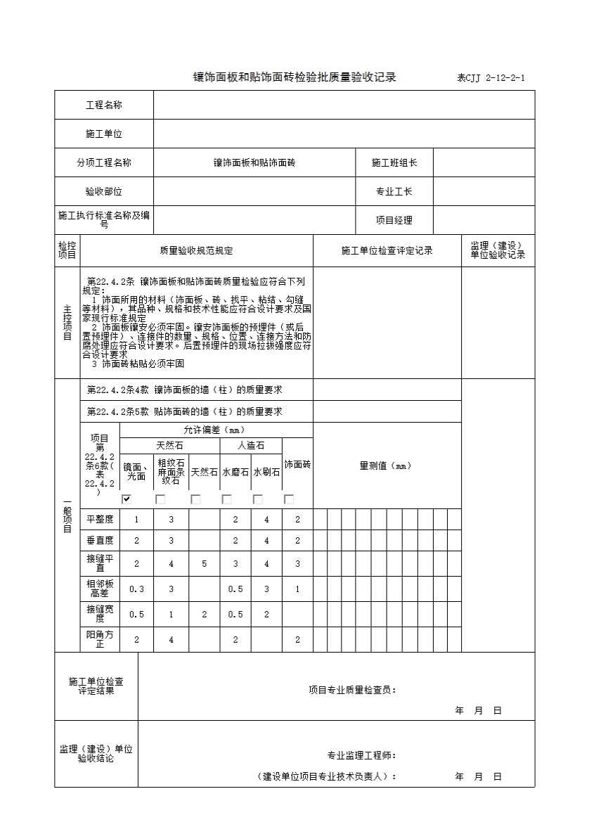 表 22. 4.2饰面允许偏差