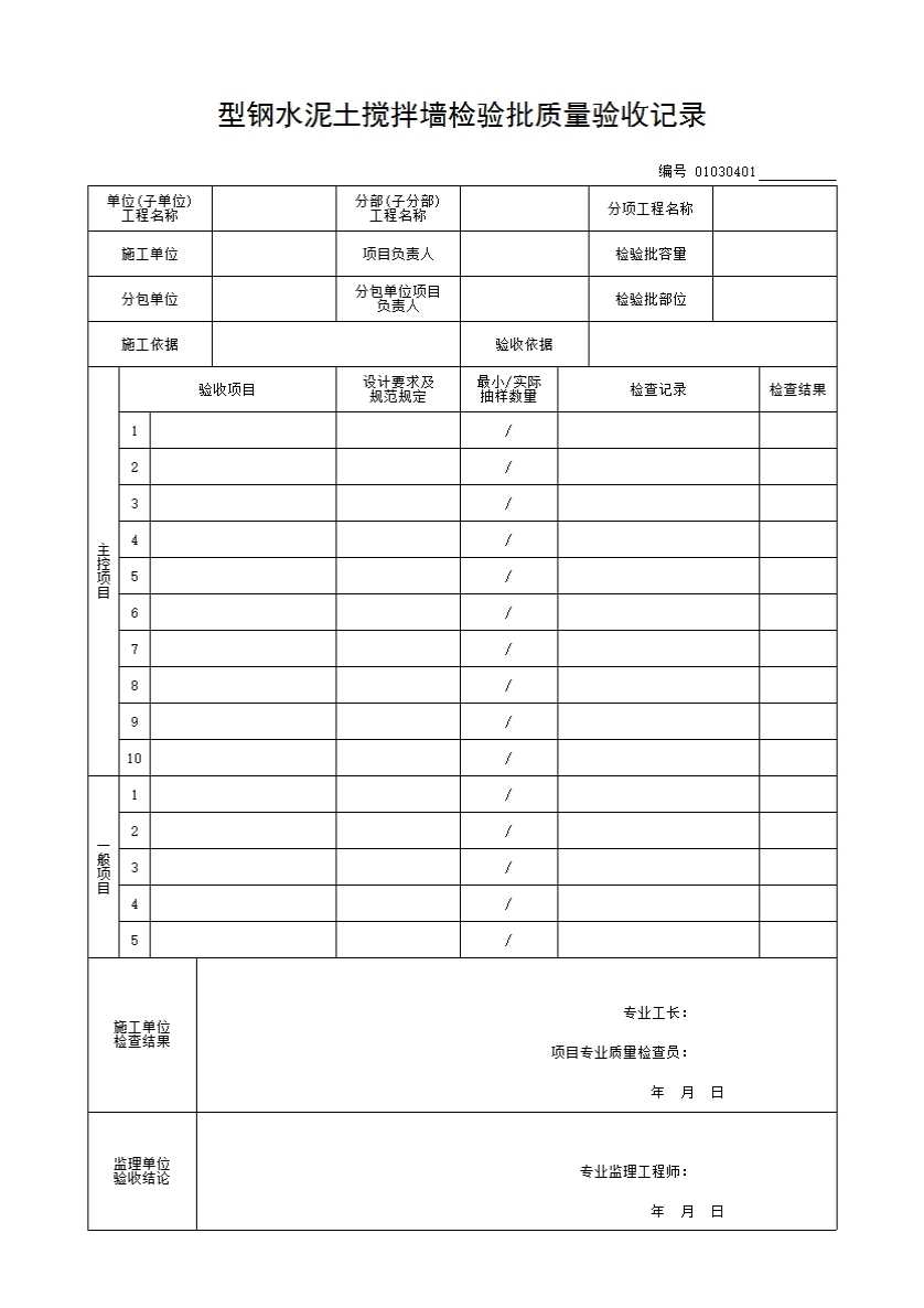 01030301_型钢水泥土搅拌墙检验批质量验收记录