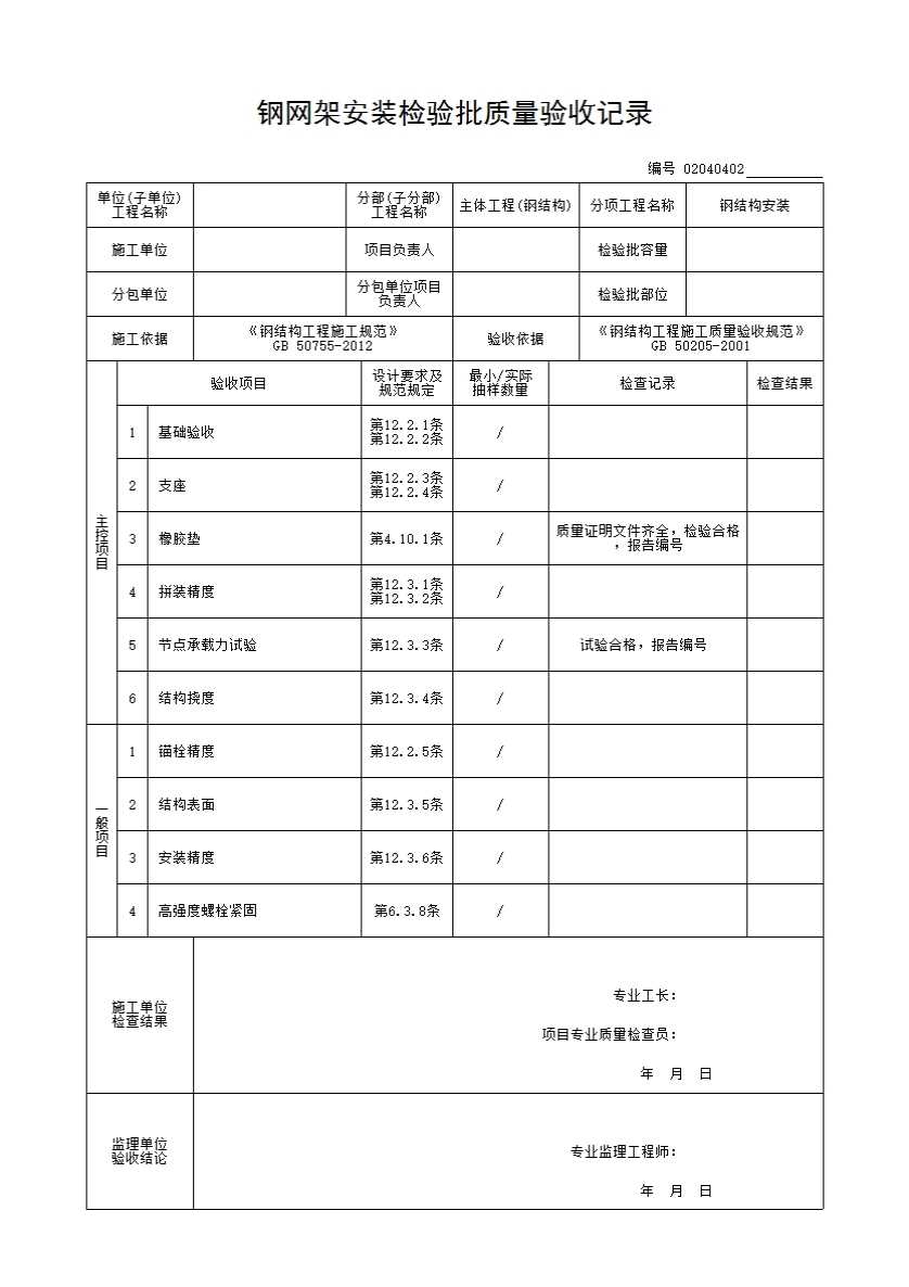 本表适用于建筑工程中的平板型钢网格结构(简称钢网架结构)安装工程的质量验收。
