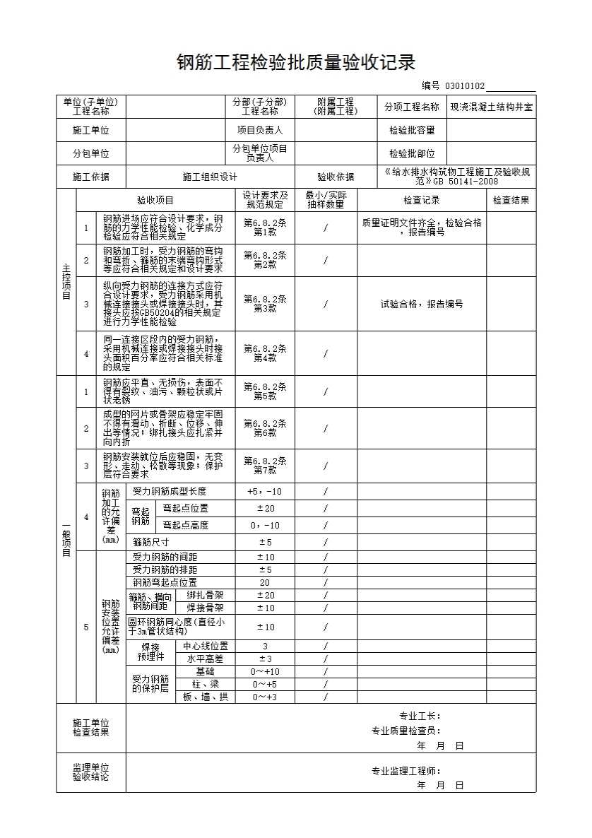 1 进场钢筋的质量保证资料应齐全,每批的出厂质量合格证明书及各项性能检验报告应符合国家有关标准规定和设计要求;受力钢筋的品种、级别、规格和数量必须符合设计要求;钢筋的力学性能检验、化学成分检验等应符合现行国家标准《混凝土结构工程施工质量验收规范》GB 50204的相关规定;