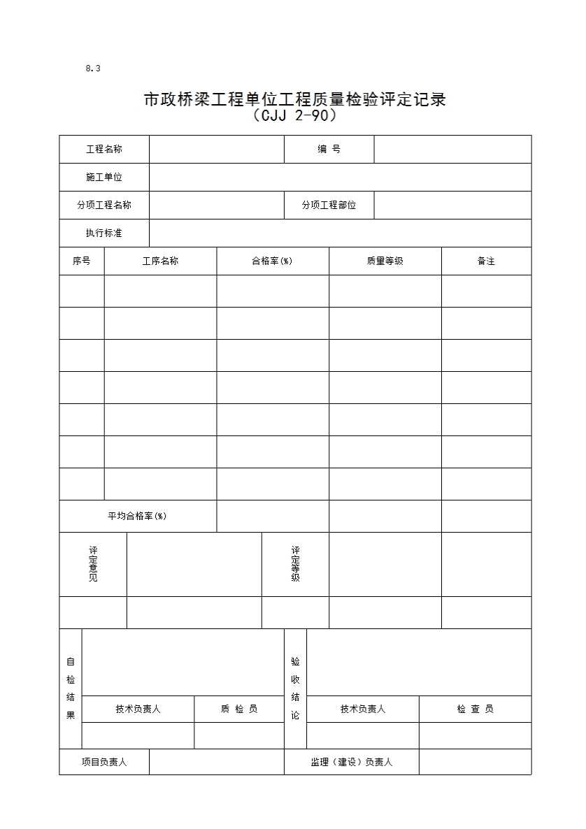 8.3 市政桥梁工程单位工程质量检验评定记录