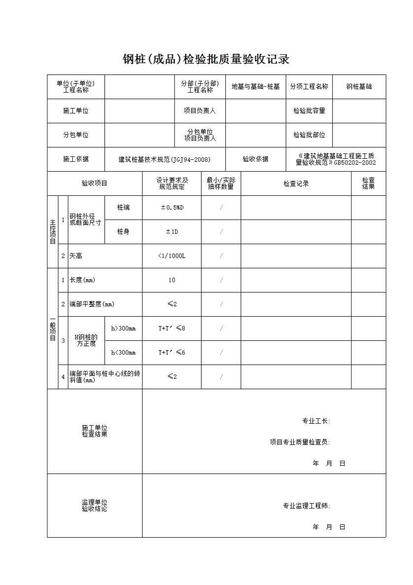 钢桩(成品)检验批质量验收记录